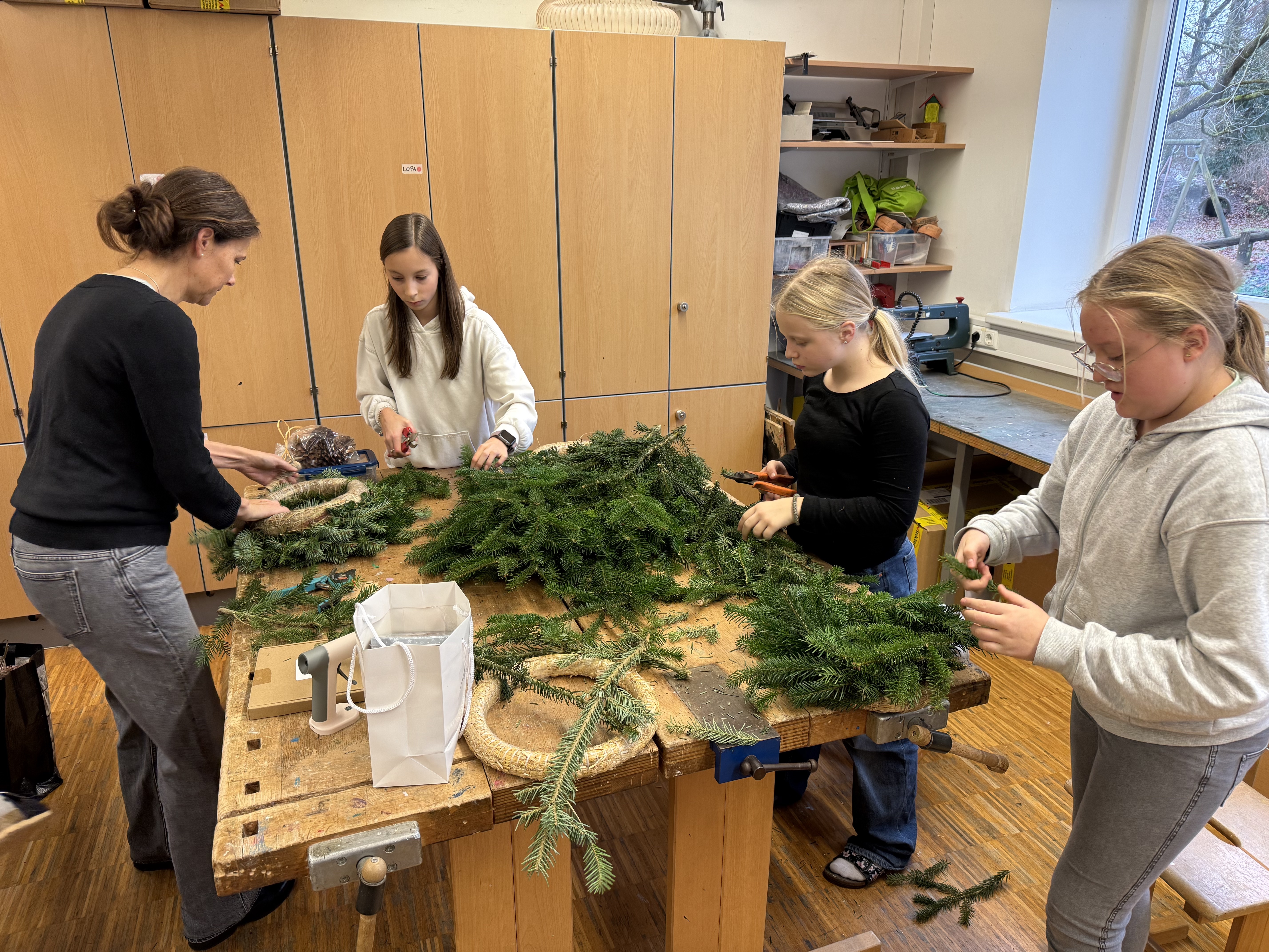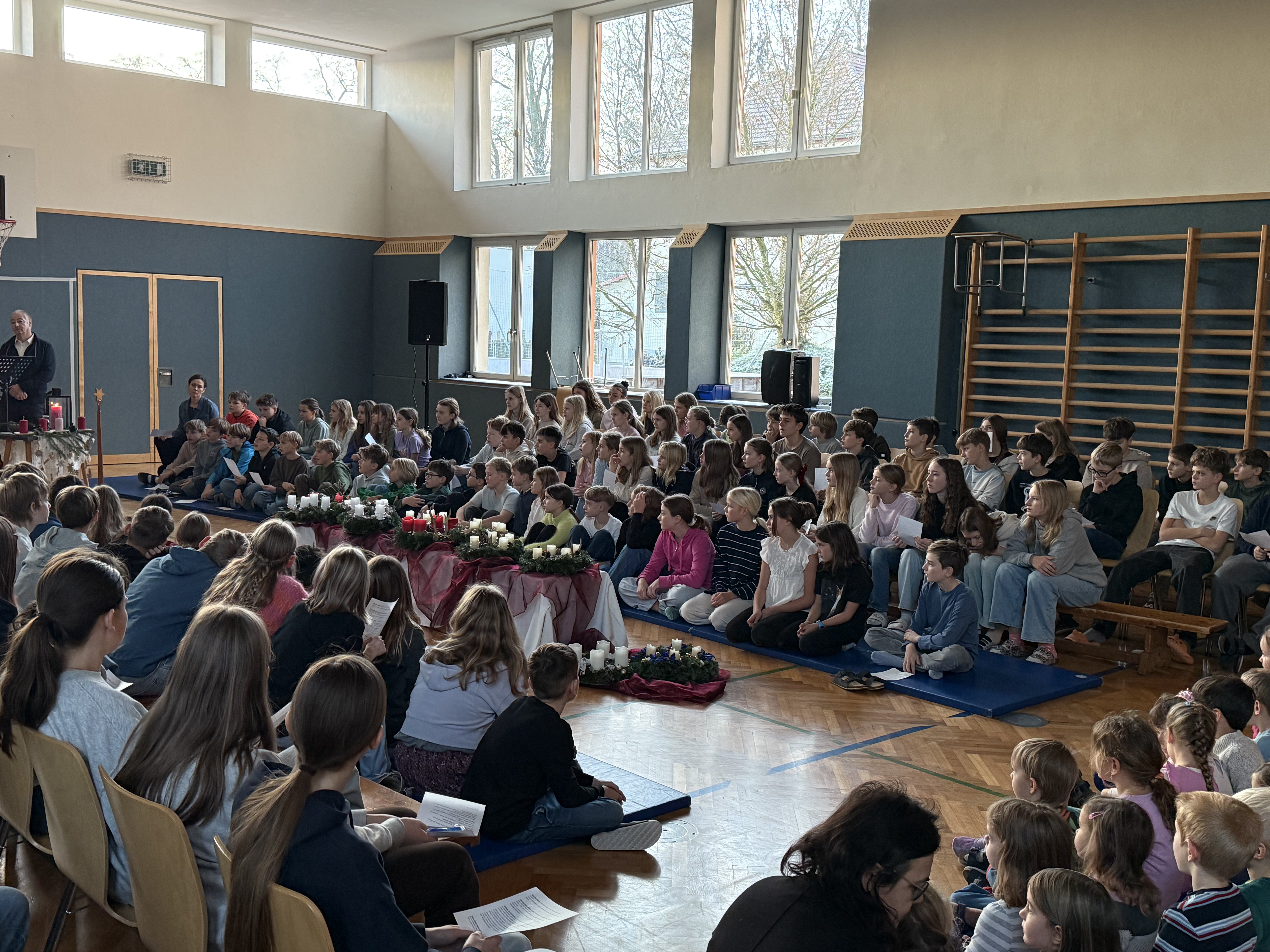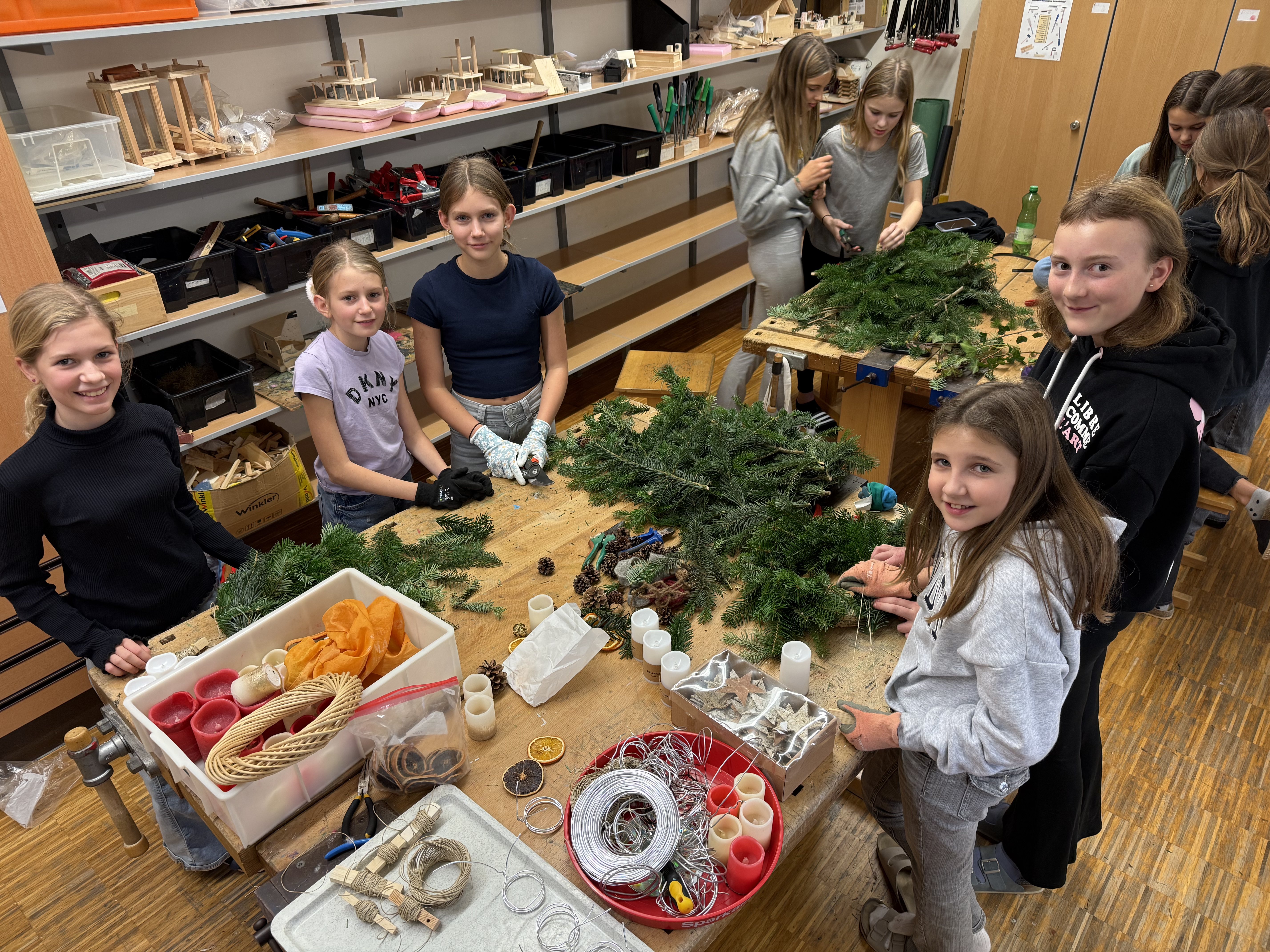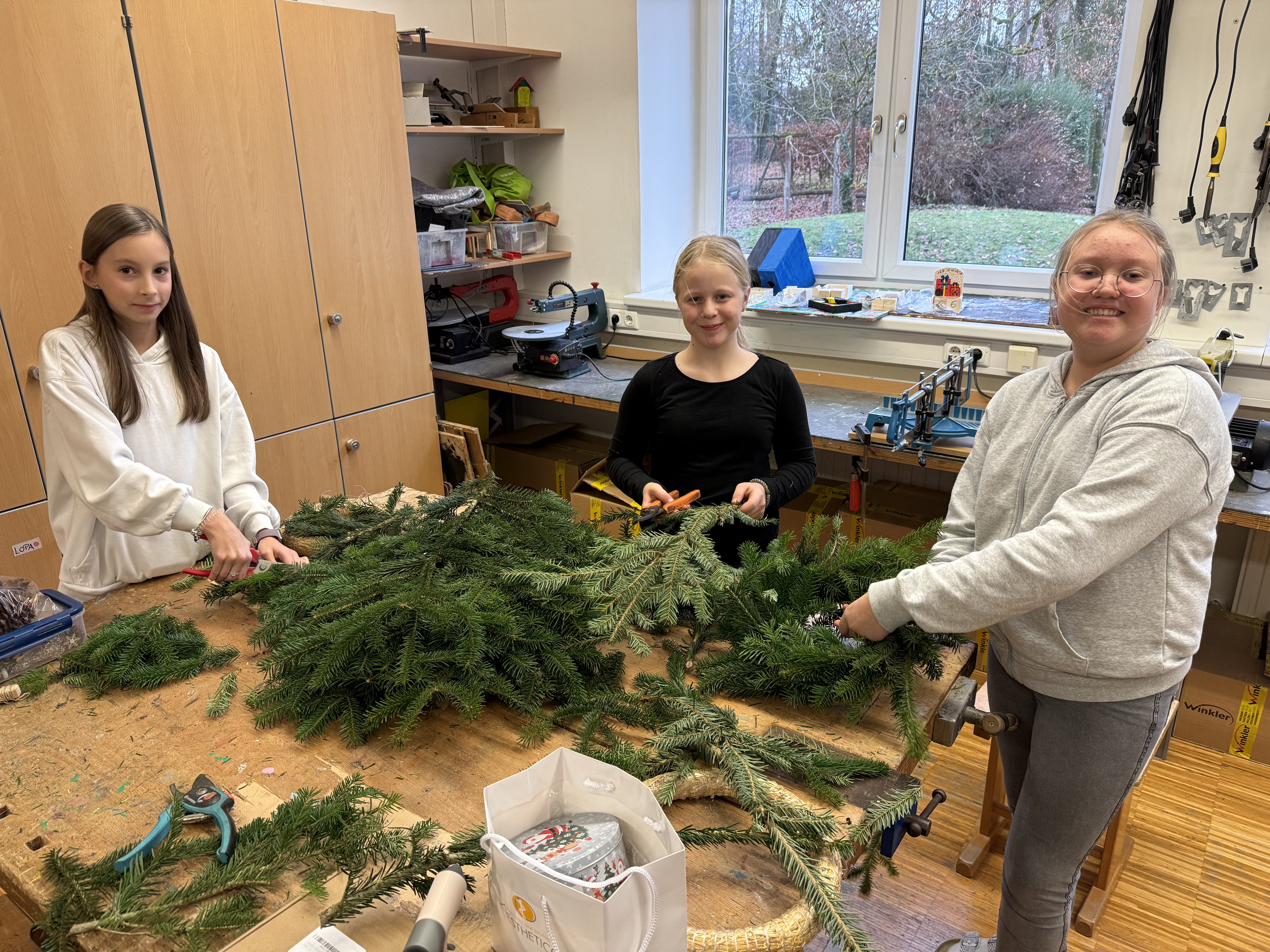 Die Schülerinnen der 2a- und 2b-Klasse haben gemeinsam mit Frau Steinwendtner Adventkränze gebunden, welche von Herrn Griesser anschließend feierlich im Turnsaal geweiht wurden.