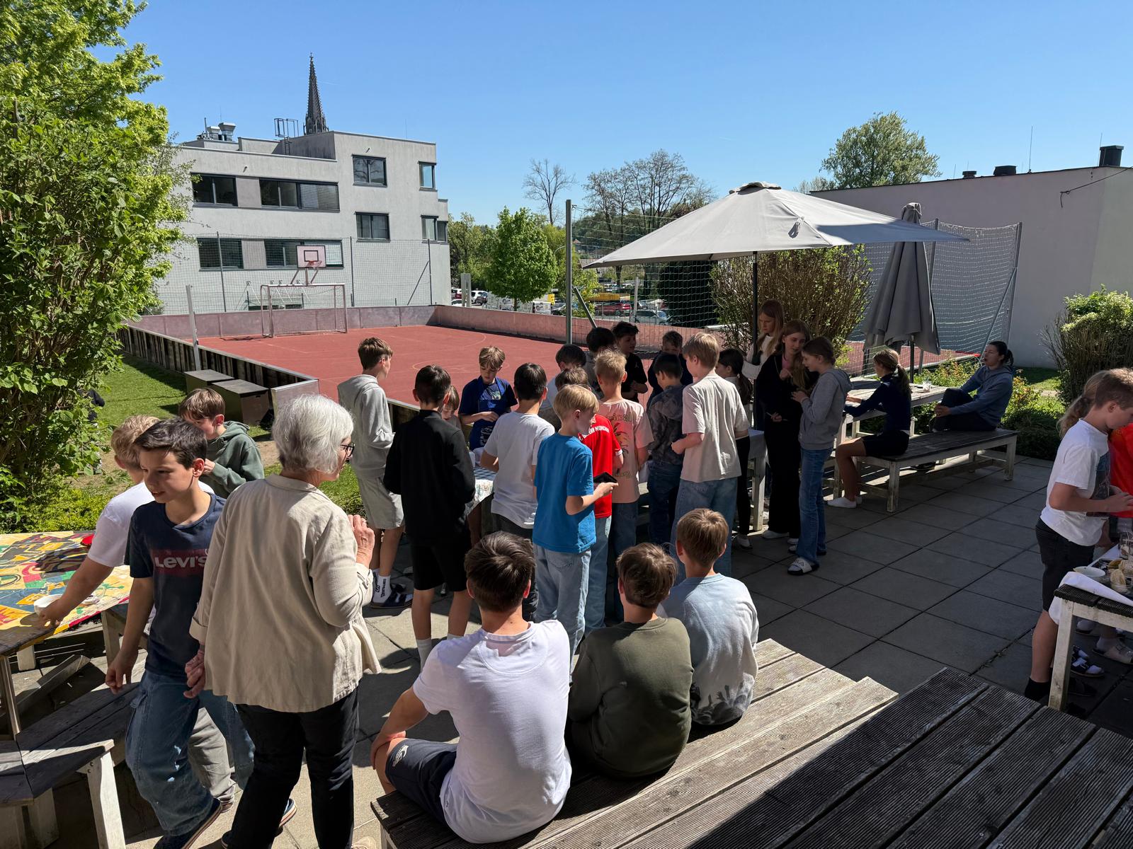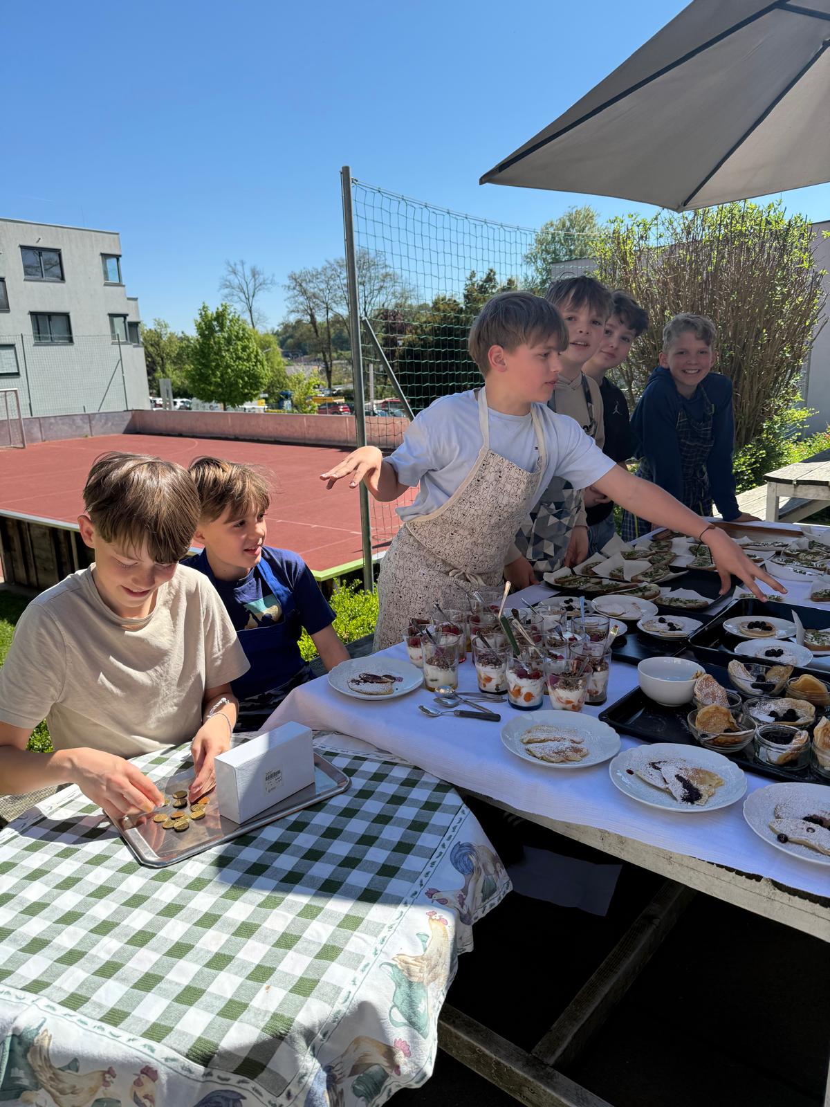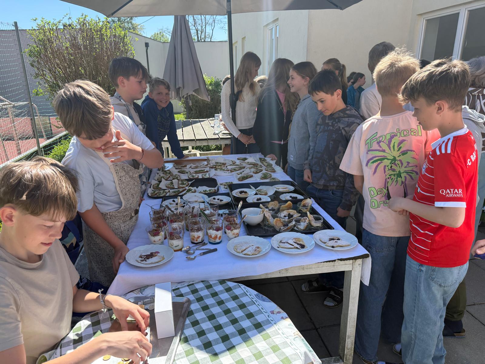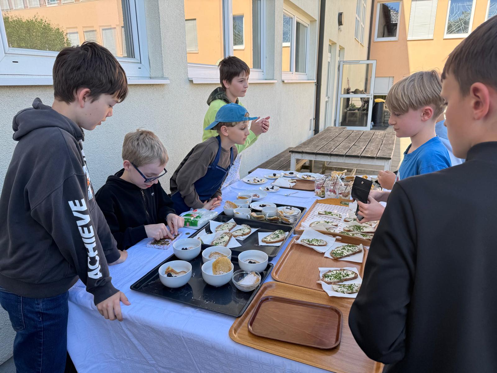 Die Burschen der 2ab-Klassen haben heute draußen auf der Terrasse mit viel Einsatz den Jausenverkauf organisiert. Bei frischer Luft, guter Stimmung und leckeren Snacks war der Verkauf ein voller Erfolg!